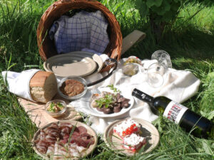 Funktioniert so: Picknick-Korb vorbestellen, am Weingut abholen und die Heurigen-Schmankerl in der Wiese bei unseren Weingärten oder der Kellerei genießen. Zwei Körbe stehen zur Auswahl: